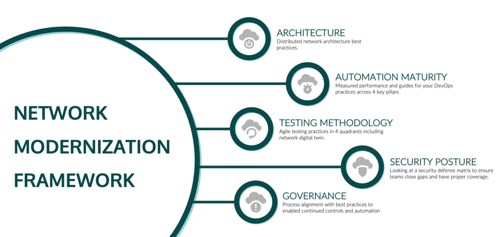 By prioritizing flexibility & decentralization over rigidity & centralization, the Network Modernization Framework provides a path to a network with the lowest latency, lowest cost, quickest provisioning and highest availability.